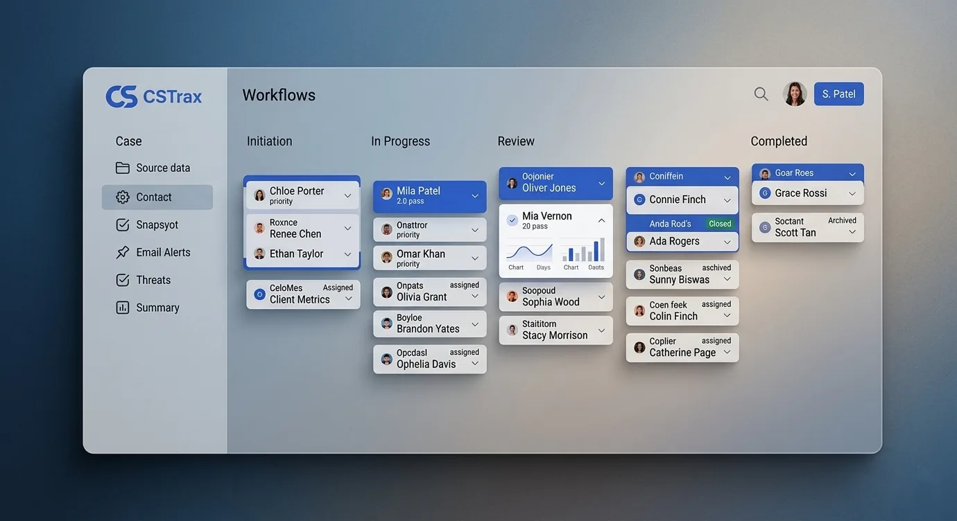 Handling compliance cases manually across emails, spreadsheets, and disconnected tools leads to inefficiencies and missed steps. CSTrax centralizes the entire case lifecycle, ensuring every case follows a structured process from start to finish. This improves tracking, accountability, and ensures no critical compliance activity is overlooked.