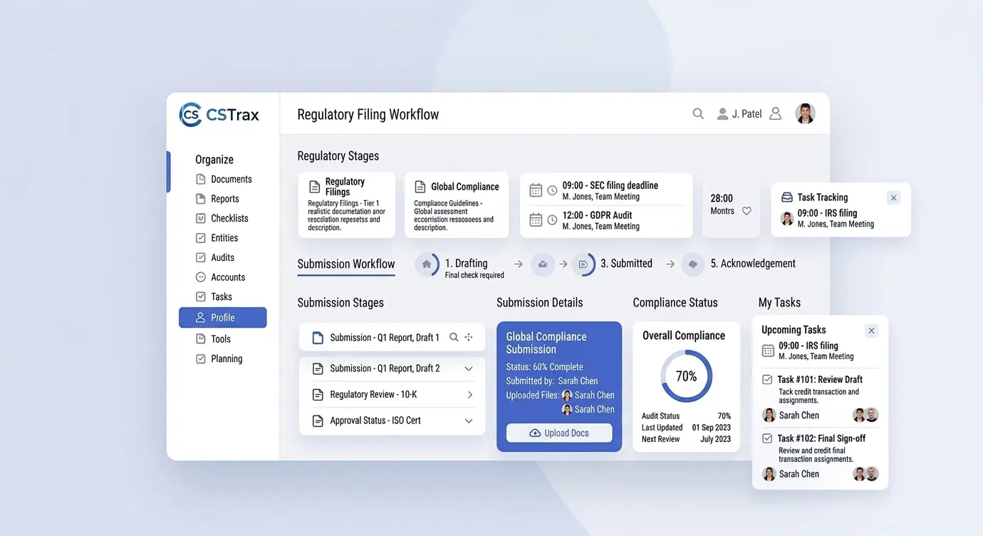 With a structured workflow in place, teams can manage filings more efficiently while reducing the risk of errors or omissions.